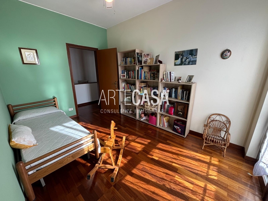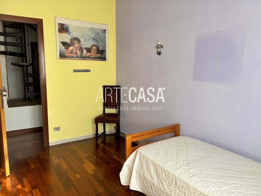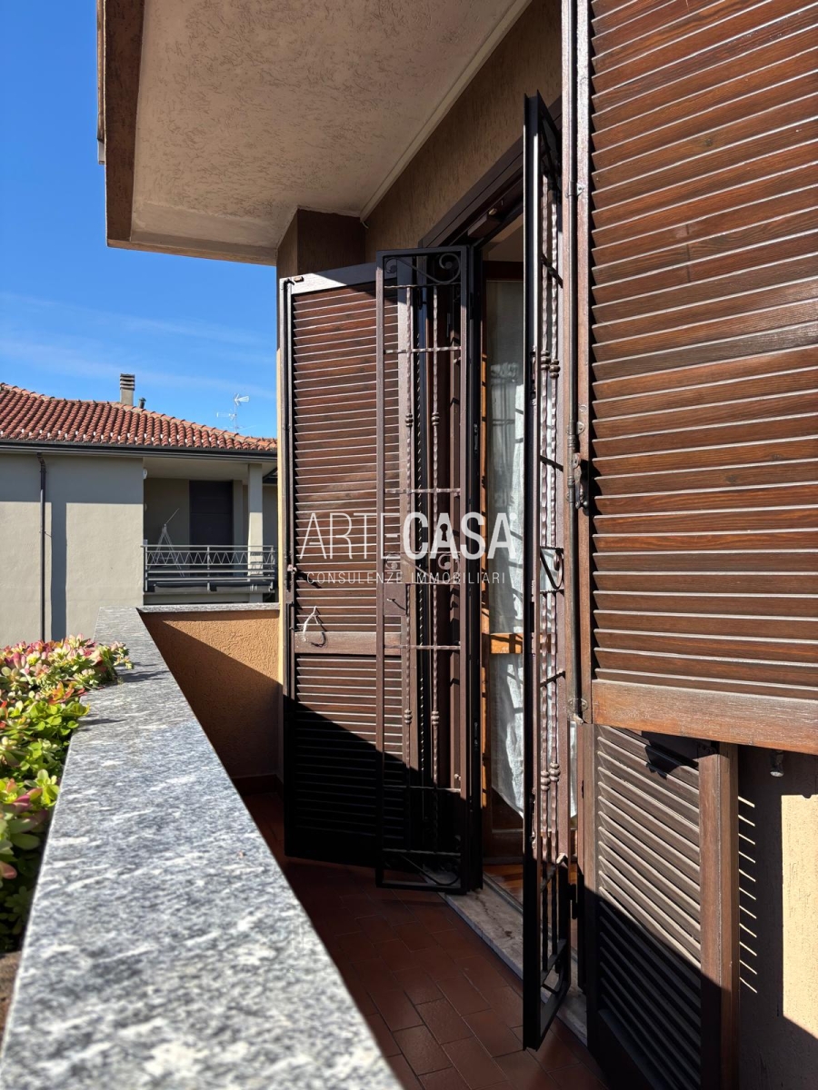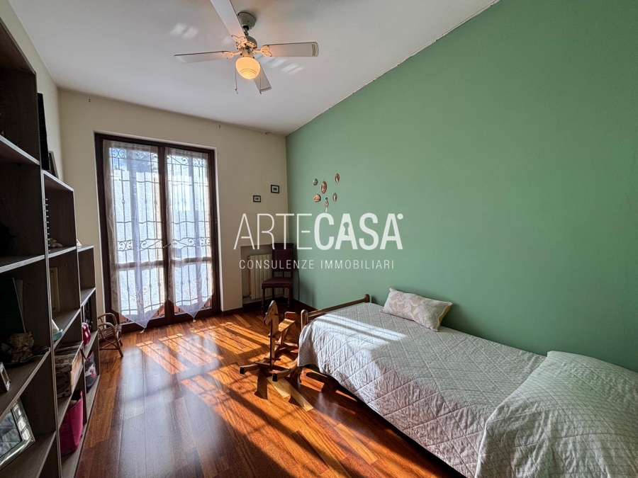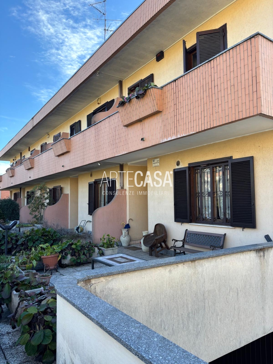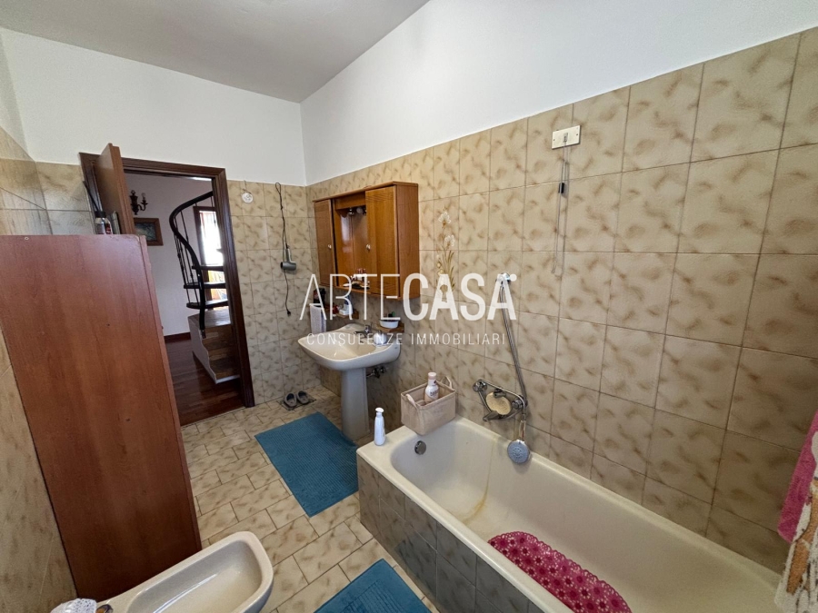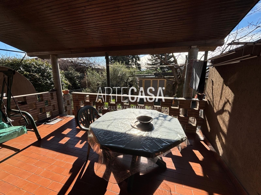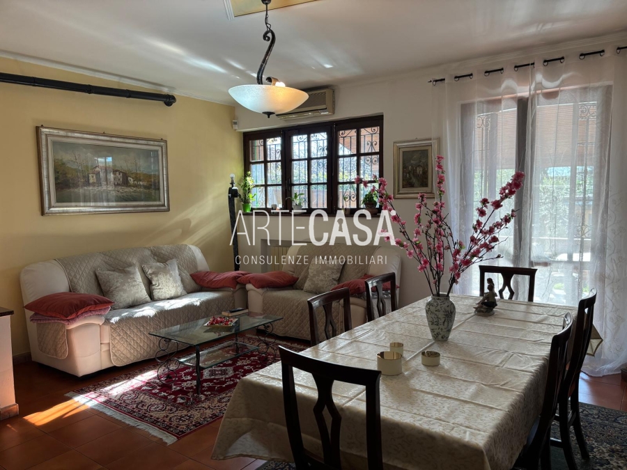 Ingresso pedonale con area esterna piastrellata. Al piano terra sono presenti la cucina abitabile, il soggiorno di generosa metratura con uscita sul giardino con patio coperto. Bagno di servizio. Al piano primo si sviluppa la zona notte con tre camere da letto dotate di balcone e il bagno padronale con vasca. Il piano interrato è raggiungibile con la scala interna o con la scala esterna posta nel giardino. Taverna open space con camino e angolo cottura. Locale lavanderia/caldaia. Accesso al box doppio in larghezza con doppia basculante. Riscaldamento autonomo, Le spese condominiali annue sono di circa €. 1.000,00.