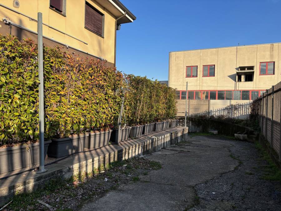 Al piano interrato, di circa 140 mq troviamo il box, il magazzino, il locale caldaia e lo spogliatoio dipendenti completo di bagno. Area esterna di proprietà con ingresso carraio per carico e scarico di circa 340 mq.