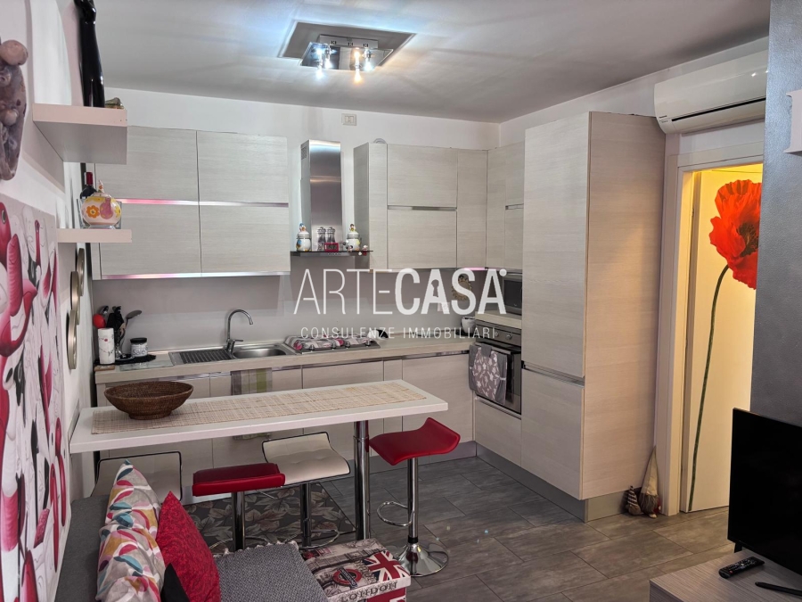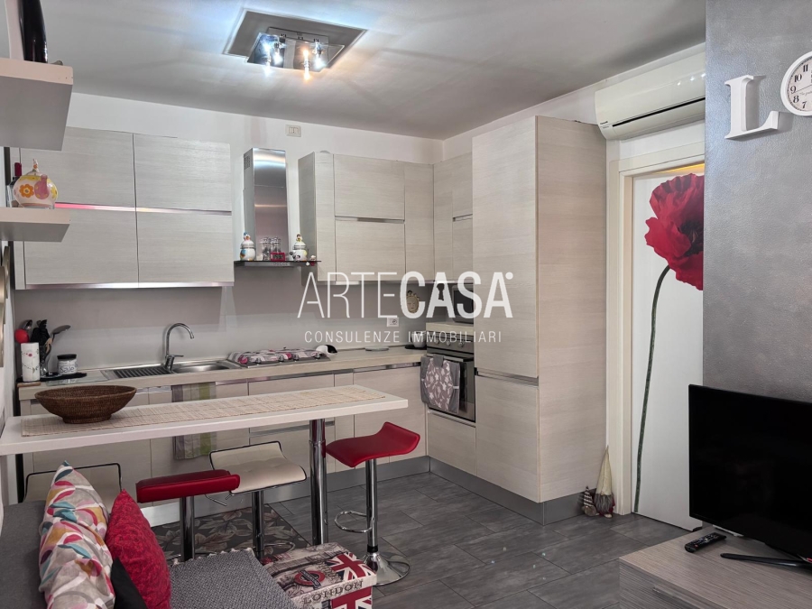 In palazzina del 2011 inserita in un piccolo cortile. Appartamento posto al piano terra composto dalla zona giorno con angolo cottura, il disimpegno con ripostiglio conduce al bagno con piatto doccia e alla camera matrimoniale. Le spese condominiali sono di circa 1.400,00 € annue comprensive di riscaldamento e acqua a consumo.