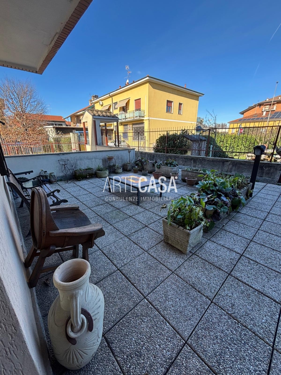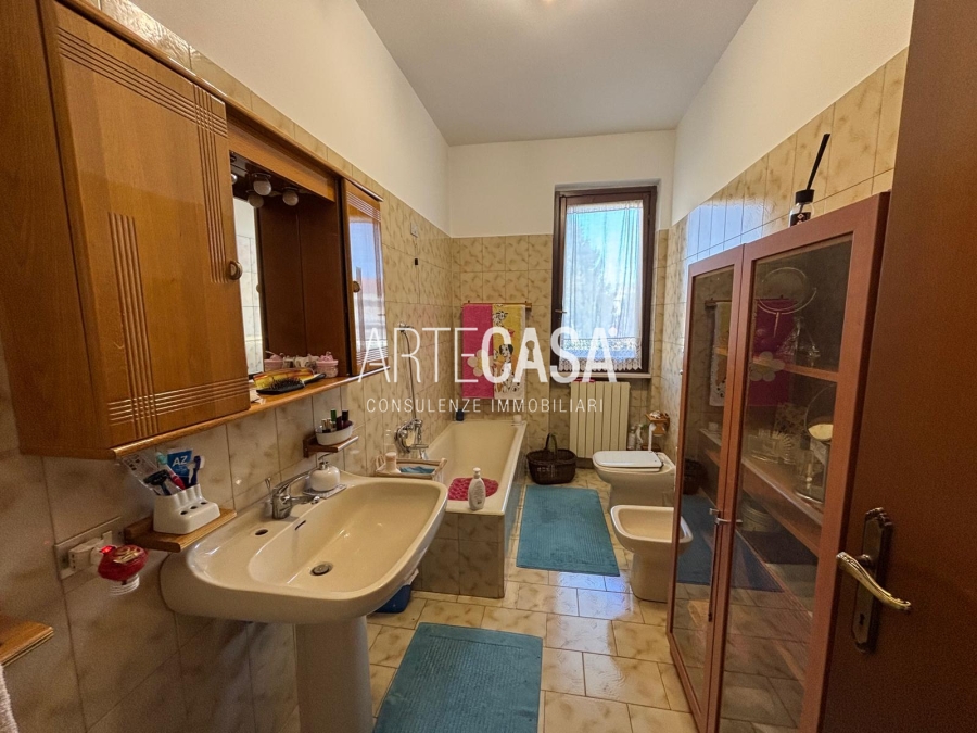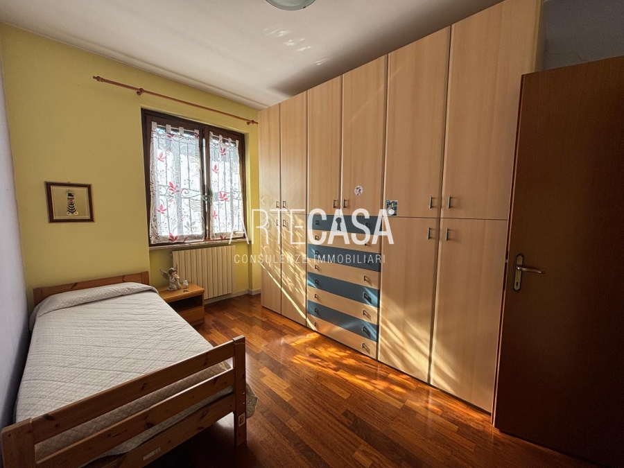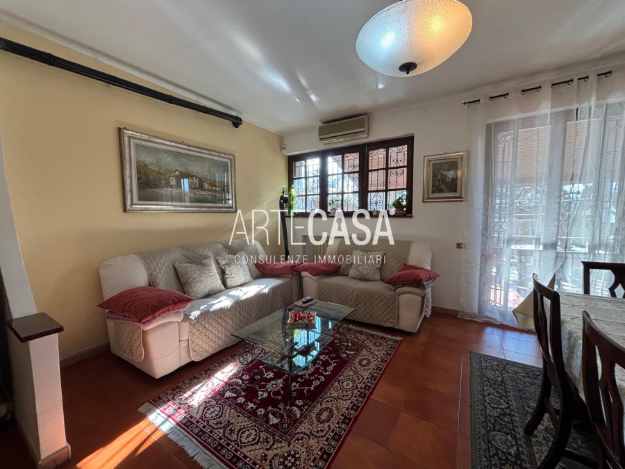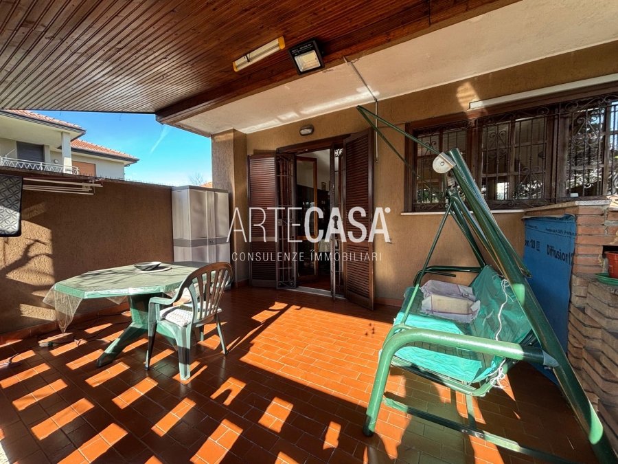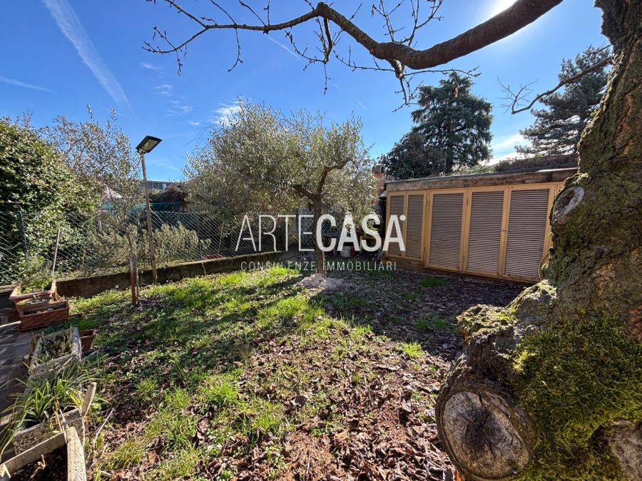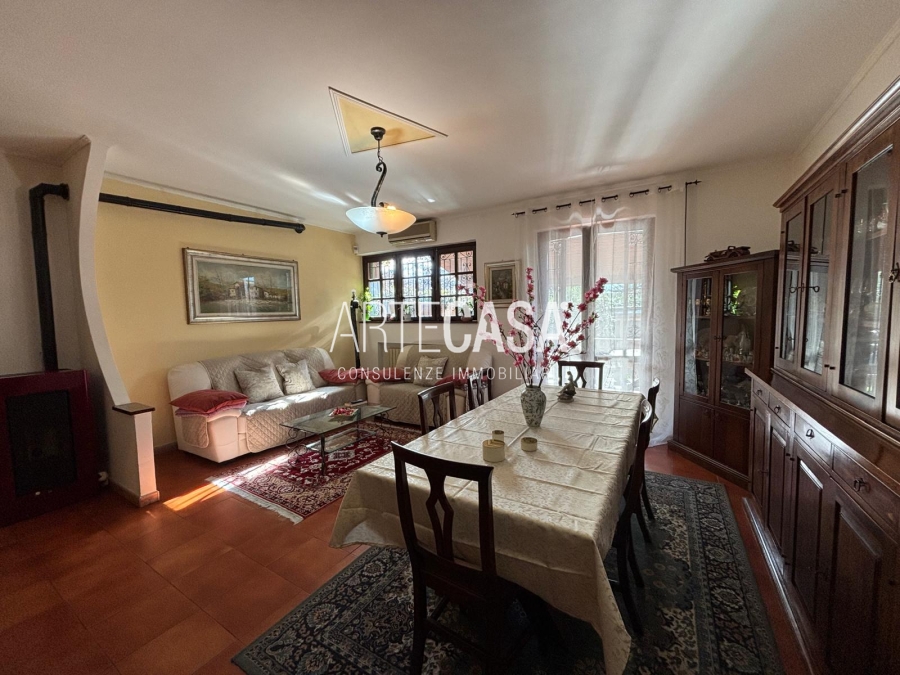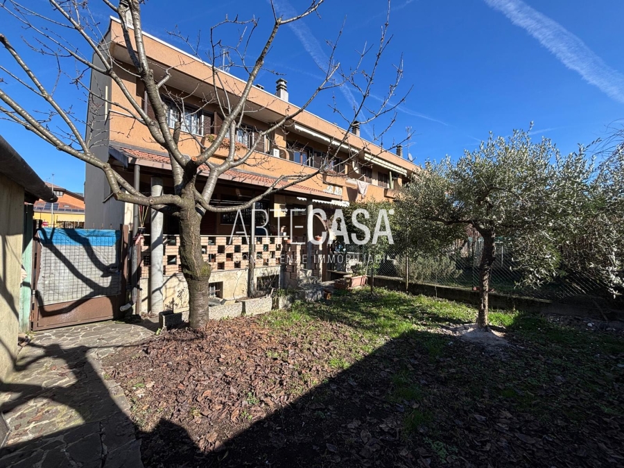 Ingresso pedonale con area esterna piastrellata. Al piano terra sono presenti la cucina abitabile, il soggiorno di generosa metratura con uscita sul giardino con patio coperto. Bagno di servizio. Al piano primo si sviluppa la zona notte con tre camere da letto dotate di balcone e il bagno padronale con vasca. Il piano interrato è raggiungibile con la scala interna o con la scala esterna posta nel giardino. Taverna open space con camino e angolo cottura. Locale lavanderia/caldaia. Accesso al box doppio in larghezza con doppia basculante. Riscaldamento autonomo, Le spese condominiali annue sono di circa €. 1.000,00.